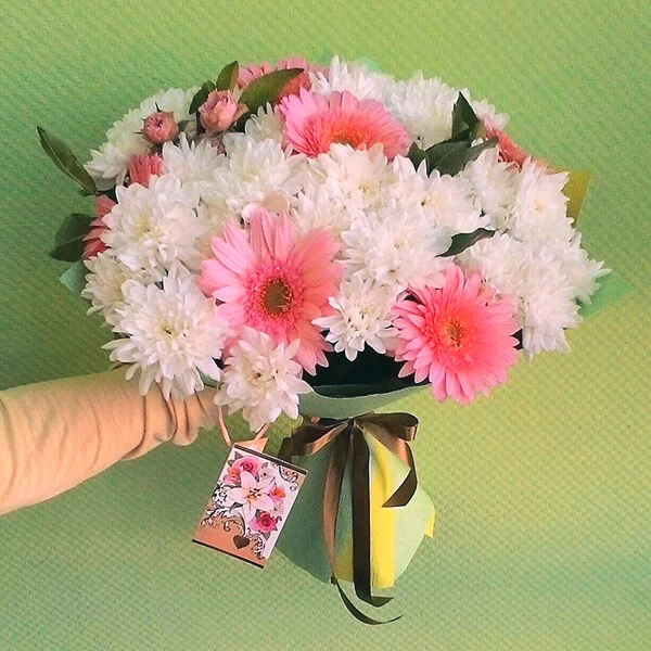 ОТЗЫВЫ О БУКЕТЕ «Глоток романтики – букет из кустовой хризантемы и розовых гербер»