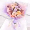 роза кремовая/персиковая – 5 шт., эустома розовая – 5 шт., роза сиреневая кустовая (возможна замена на розовую)– 5 шт., упаковка, лента.